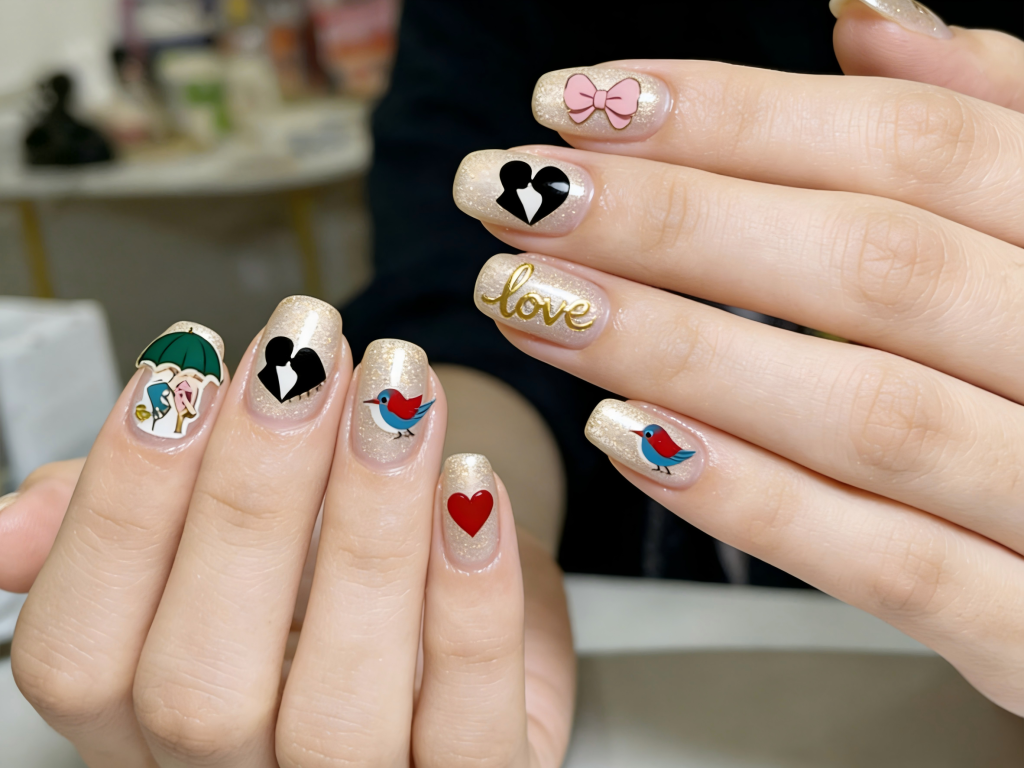 When romance becomes the scenery on your fingertips, these stickers are the ultimate choice for a heart-fluttering look. Wear your heart on your nails, and make him take a second look every time you hold hands.