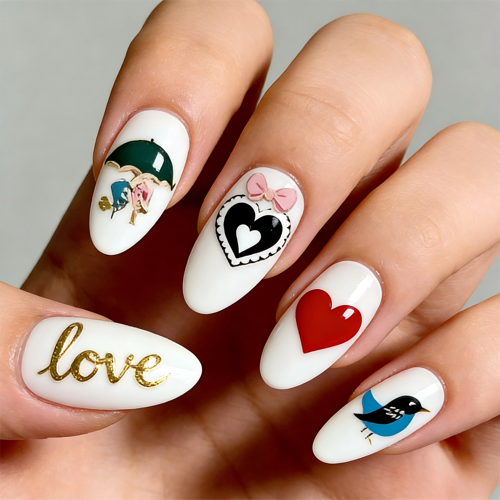 - Chic Contrast: Bold black-and-white heart emblems break the monotony, adding a sophisticated yet playful twist to the look.